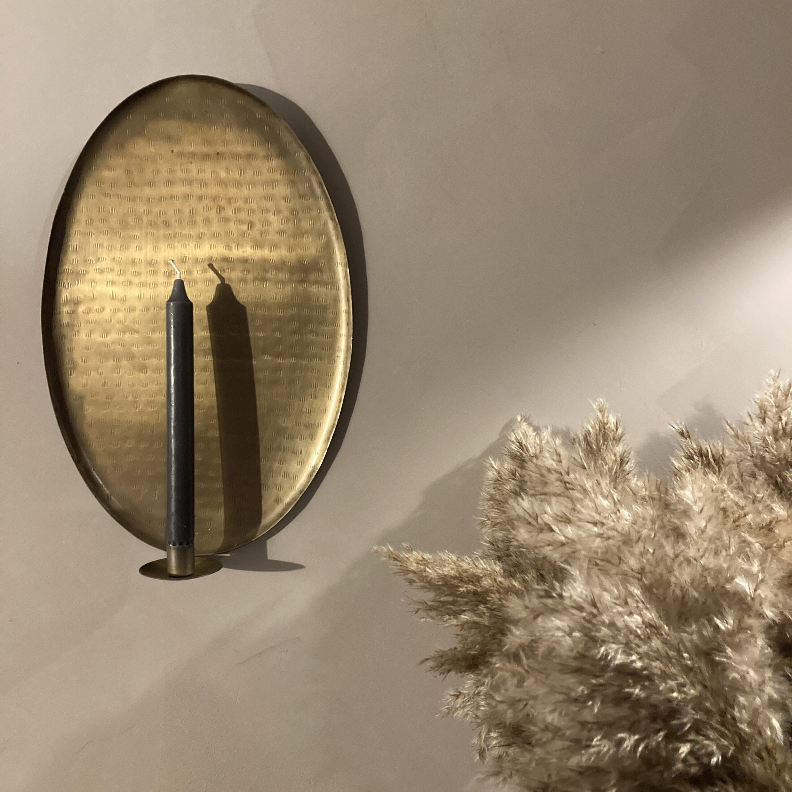 Skab en stemningsfuld atmosfære i dit hjem med denne eksklusive væglygte i metal. Med sin antikke messingfinish og unikke design er lysestagen en elegant indretningsdetalje, der kombinerer funktionalitet med kunstnerisk stil. Den håndbearbejdede overflade giver hvert eksemplar en sofistikeret og unik karakter.