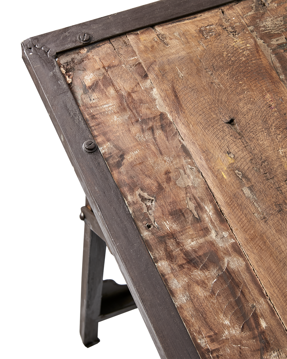 Ihopfällbart bord i metall och återvunnet trä – unikt och funktionellt